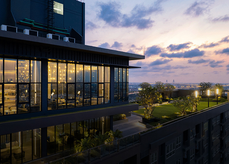 คอนโดฯ High Rise สำหรับคนรักธรรมชาติ พักสายตาบนพื้นที่สีเขียวขนาดใหญ่ในคอนโดฯ ค้นพบความสุขในการใช้ชีวิตทุกแบบ ผ่อนคลายกับส่วนกลางที่จัดเต็ม และพื้นที่สีเขียวรอบโครงการ ให้คุณได้ Balance ชีวิตได้ง่ายๆ ในทุกวัน